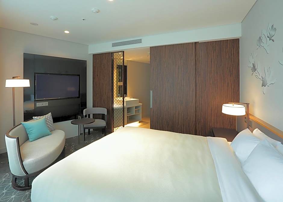 This double room's special feature is the hot tub. The double room includes a private bathroom, well-fitted with a bath, a shower, a bidet, a hairdryer and slippers. The double room provides air conditioning, soundproof walls, a wardrobe, a safe deposit box, as well as a flat-screen TV with satellite channels. The unit offers 1 bed.